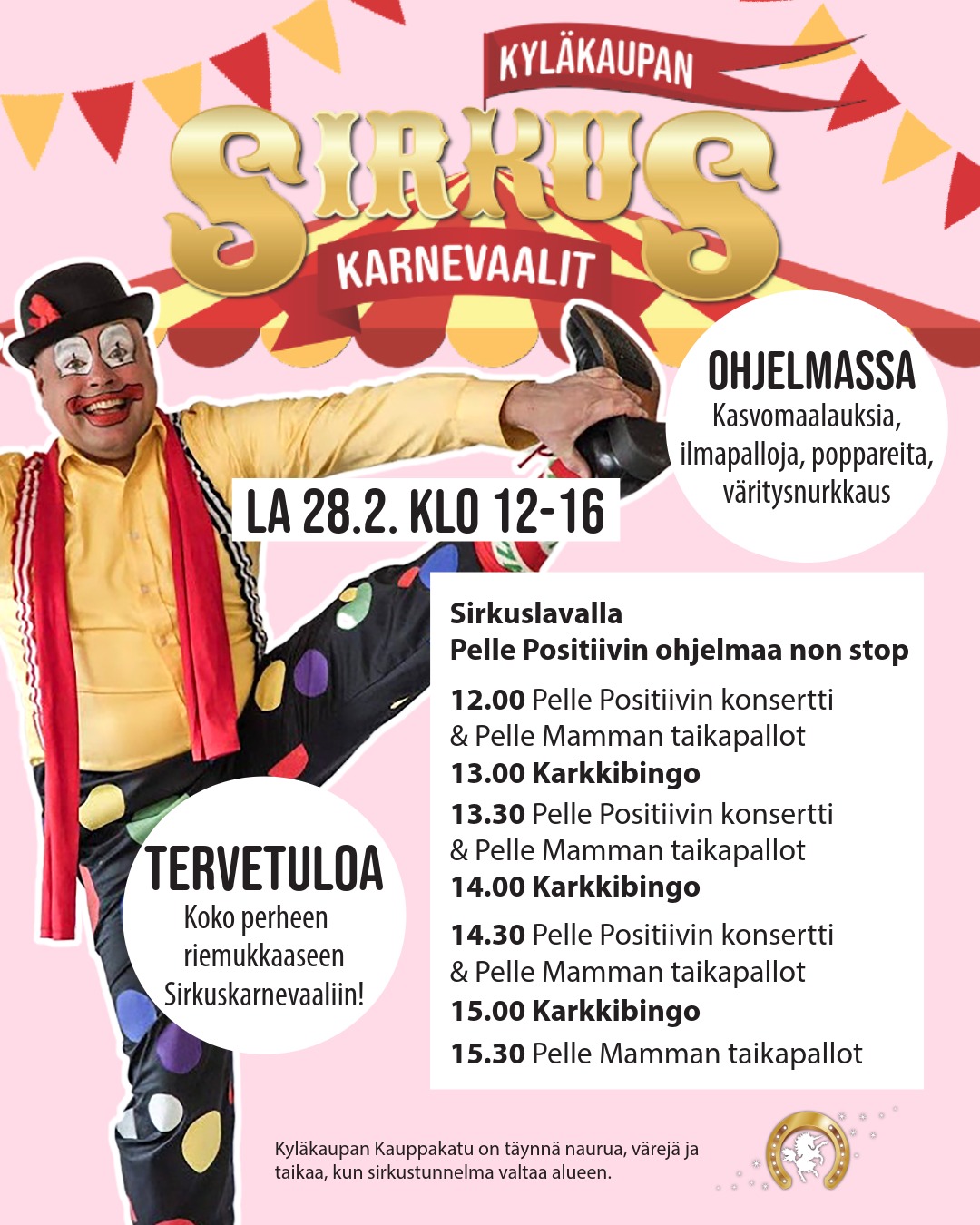 Tervetuloa talvilomalla Alavuden Tuuriin Keskisen Kyläkaupan Sirkuskarnevaaleille!