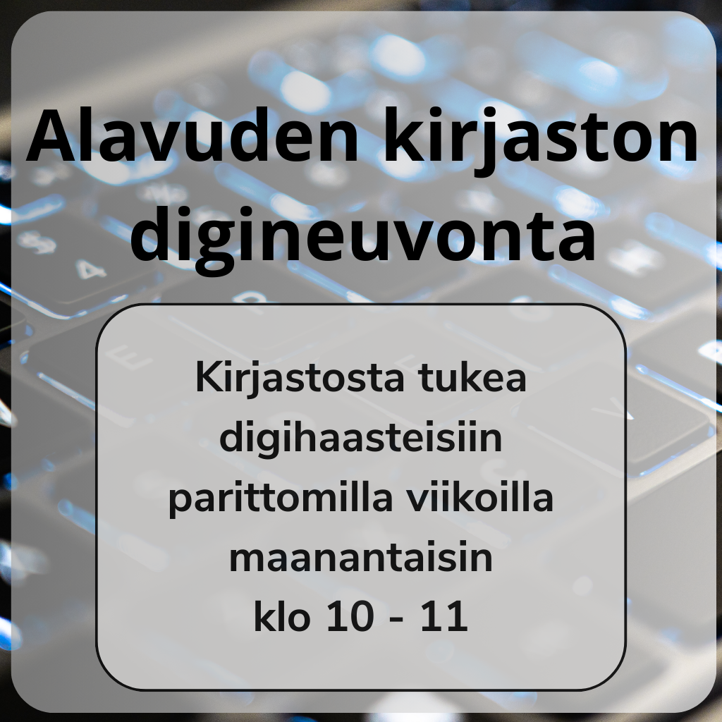 Alavuden kirjastossa on tarjolla digineuvontaa parittomien viikkojen maanantaisin klo 10 - 11.