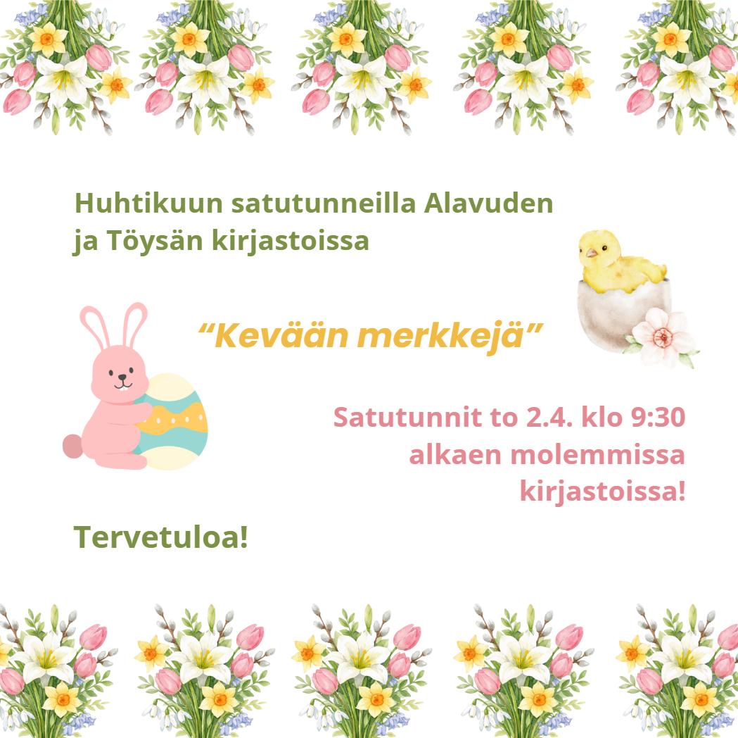 Tervetuloa satutunnille Töysän kirjastoon to 2.4. klo 9.30. Aiheena "Kevään merkkejä."