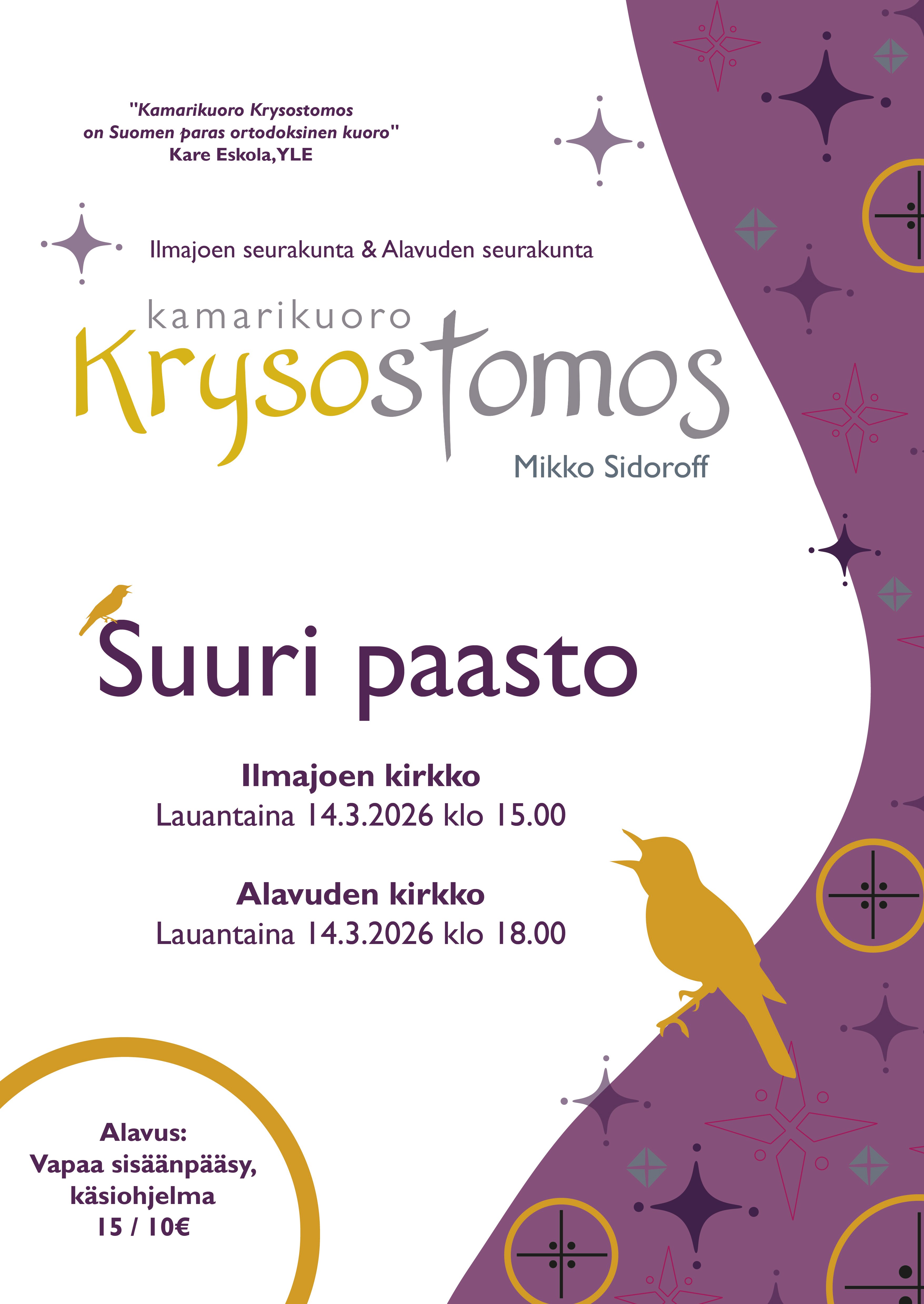 Suuri paasto -konsertti - ortodoksinen kamarikuoro Krysostomos la 14.3. Alavuden kirkossa klo 18