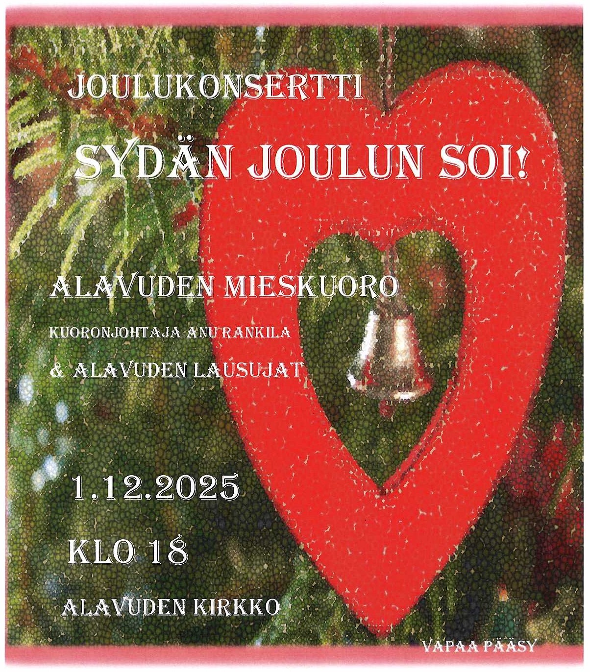Sydän joulun soi -konsertti, Alavuden mieskuoro & Alavuden lausujat, ma 1.12. Alavuden kirkossa klo 18.