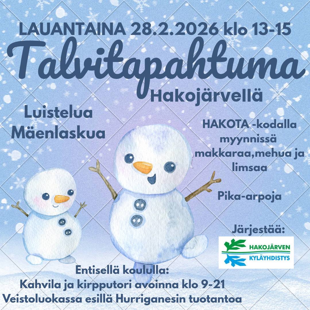 Tervetuloa Hakojärvelle talvitapahtumaan lauantaina 28.2.2026 klo 13-15.