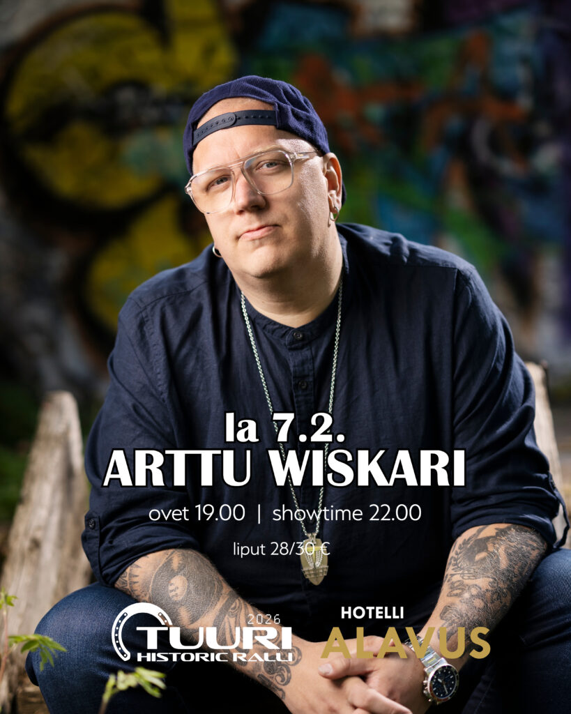 Tuuri Historic Rallin viralliset jatkot lauantaina 7.2.2026 Hotelli Alavudessa Arttu Wiskarin johdolla.