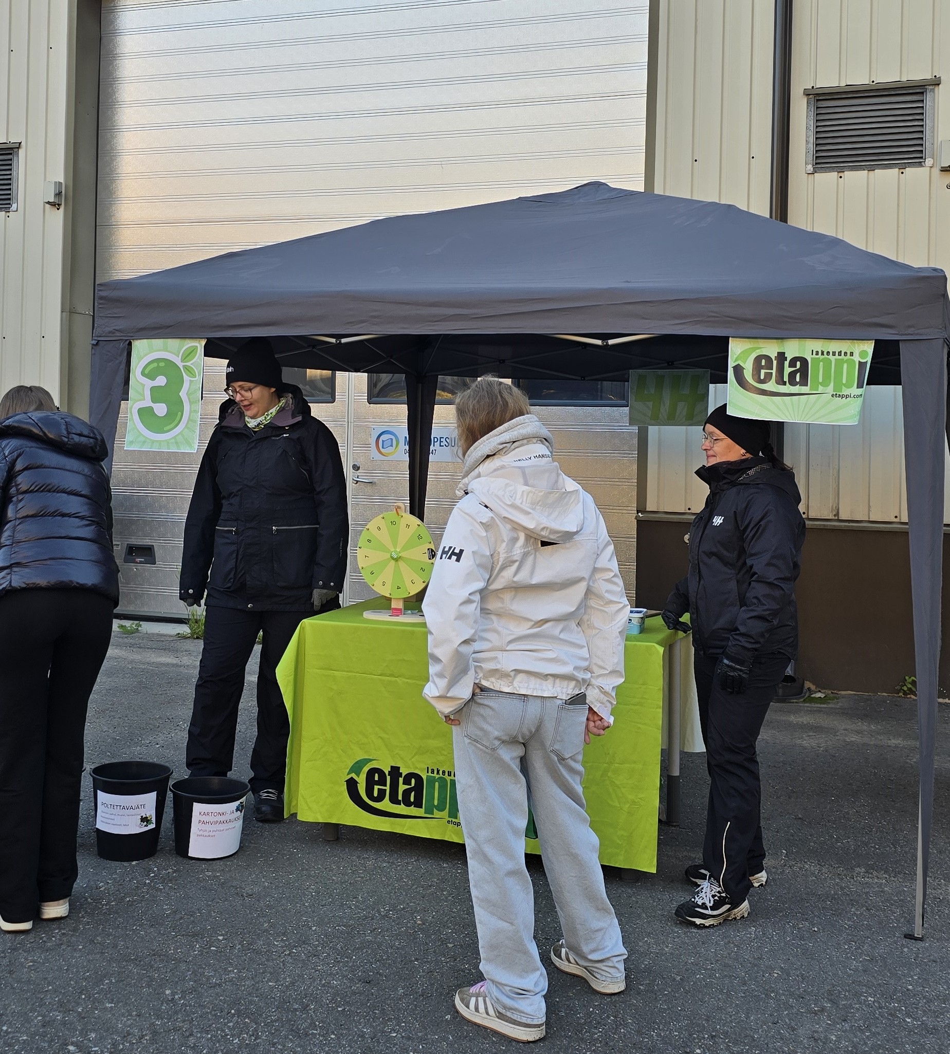 Alavuden 4H-yhdistyksen toiminnanjohtaja Minna Kontolampi (kuvassa vasemmalla) ja Töysän 4H-yhdistyksen toiminnanjohtaja Katri Takala-Niemistö (kuvassa oikealla) toimivat Lakeuden Etapin kierrätysneuvojina.