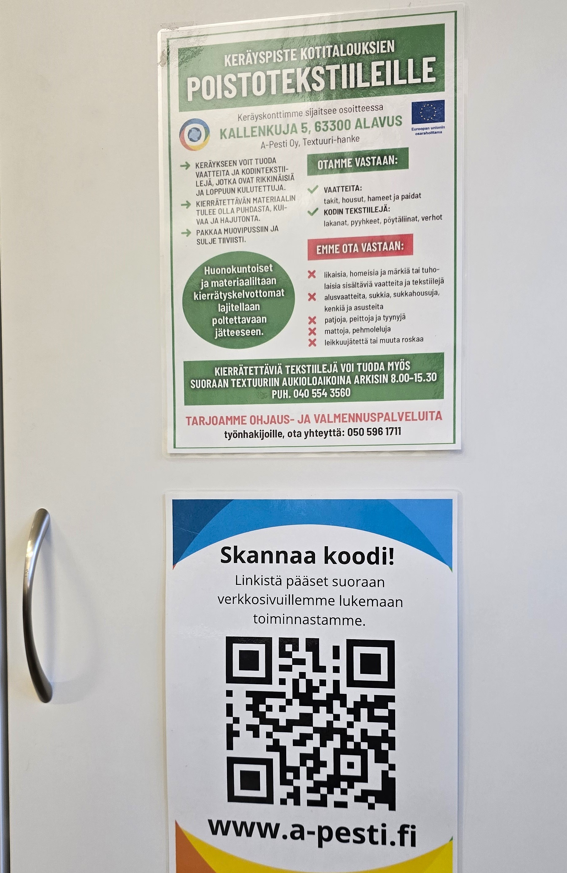 Textuuri-hanke on A-Pesti Oy:n kotitalouksien poistotekstiilien kierrätykseen keskittyvä toimintamuoto. Textuuri vastaanottaa poistotekstiiliä Textuuri-hankkeen toimitiloissa arkisin klo 8.00-15.30. Hankkeella on myös kaksi omaa poistotekstiilien keräyspistettä; yksi sijaitsee A-Pestin kiinteistön edustalla ja toinen Tuurissa Keskisen Kyläkaupassa pullonpalautuspisteen tiloissa.