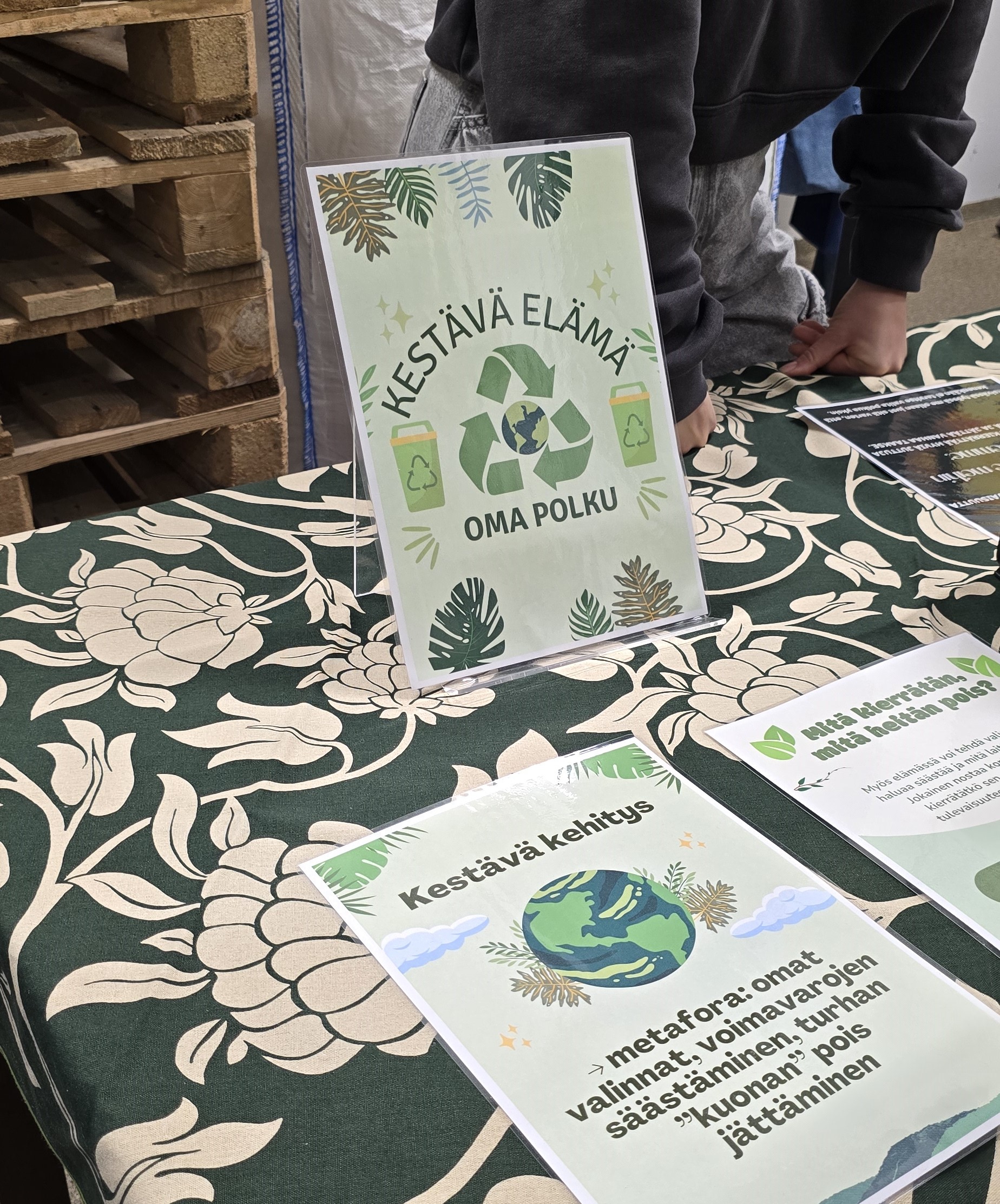 Etsivän nuorisotyön pisteellä mietitään omaa polkua kestävään elämään; mitä valintoja tehdä, jotta edistäisi omaa hyvinvointia ja kestävää elämäntapaa.