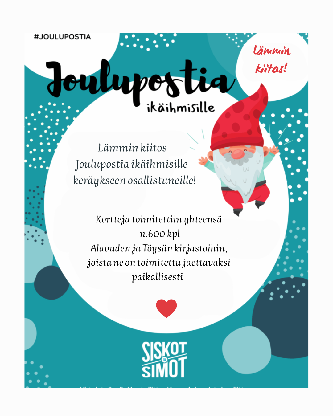 Lämmin kiitos Joulupostia ikäihmisille -keräykseen osallistuneille!